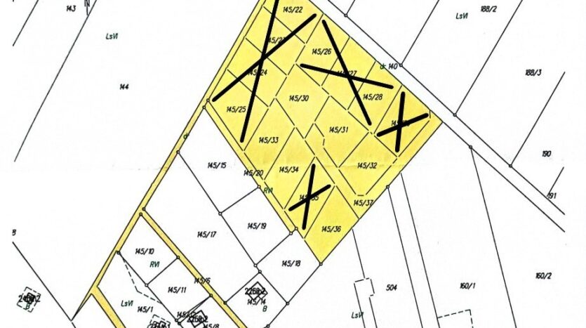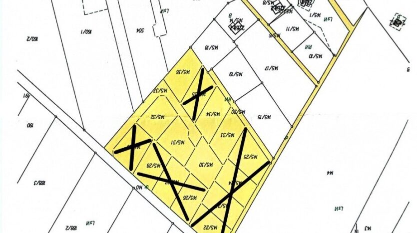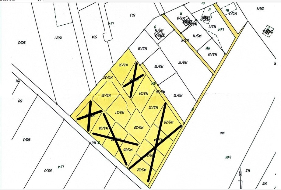 Przedmiotem ogłoszenia są TYLKO działki w kolorze żółtym.