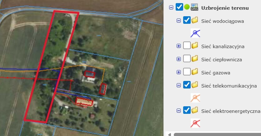 Media Dostępne w pobliżu działki: prąd, wodociąg, sieć telekomunikacyjna