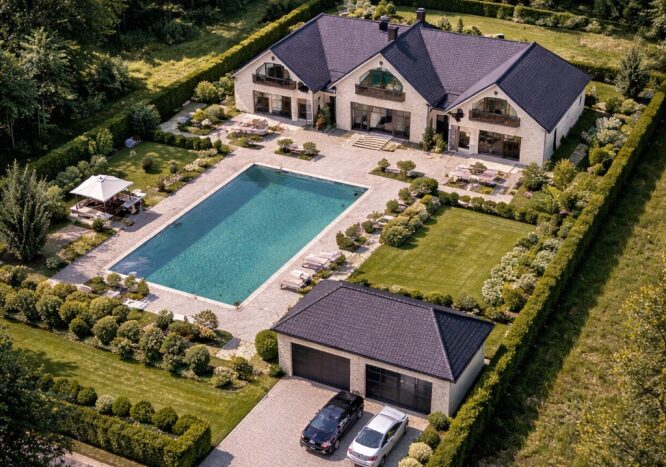 rezydencji z ogrodem i basenem