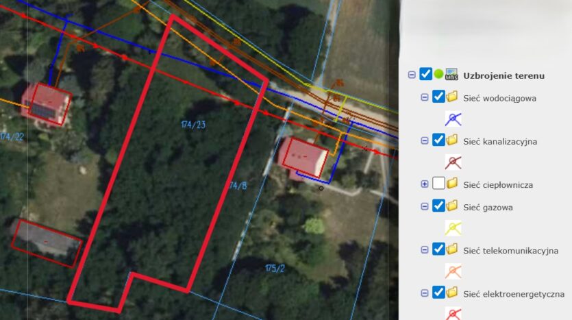 Działka posiada dostęp do pełnej infrastruktury: woda, prąd, gaz, kanalizacja, światłowód