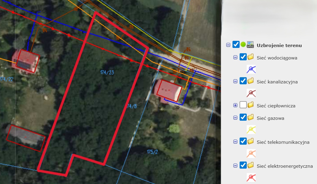Parametry działki: Działka nr: 174/23; Powierzchnia: 3074 m²