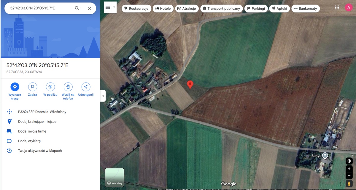• Google maps: 52°42’03.0"N 20°05’15.7"E