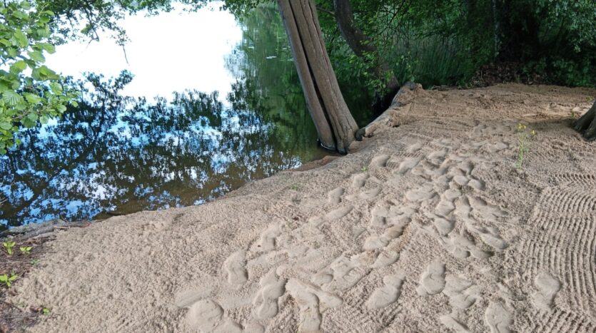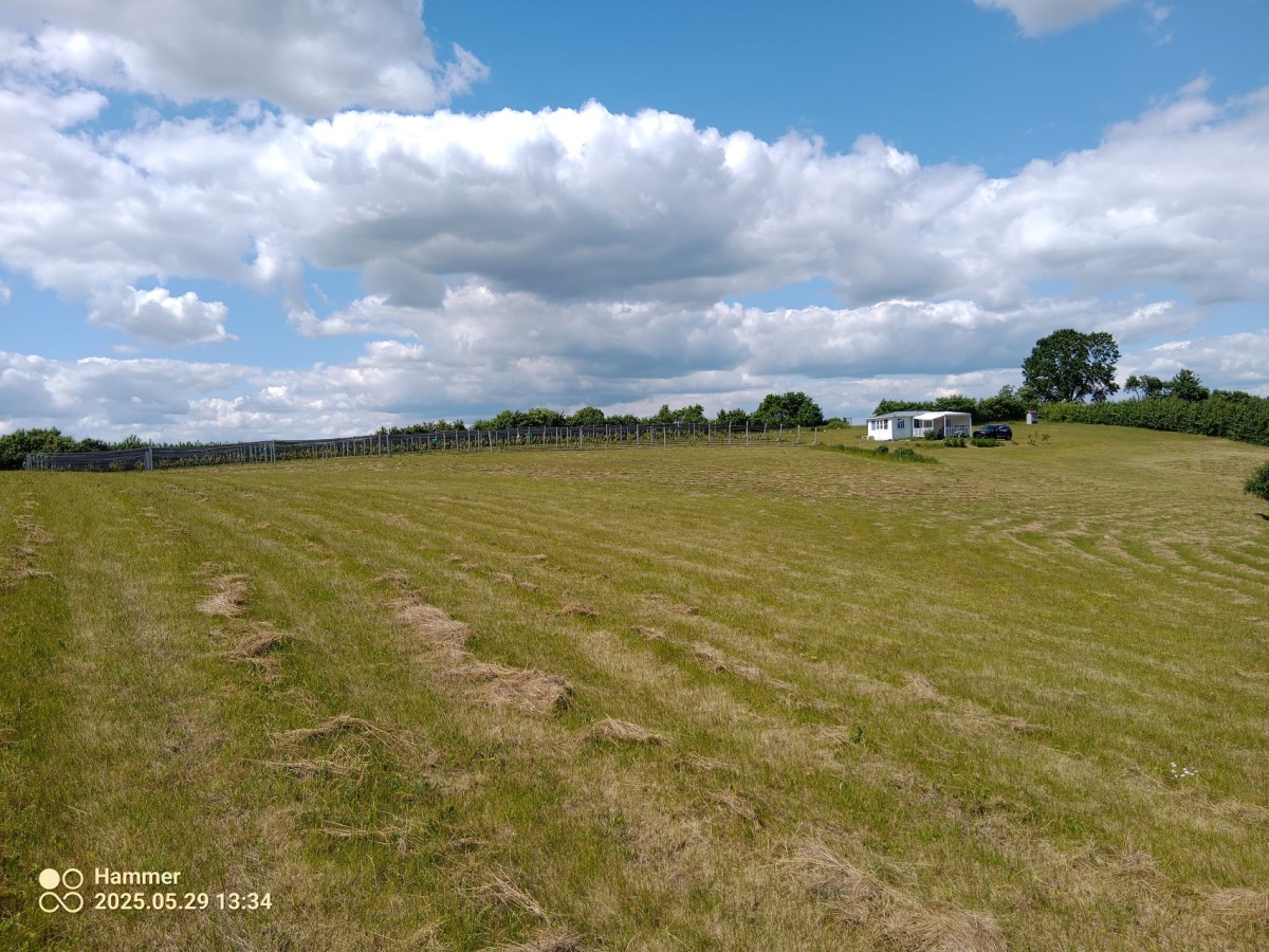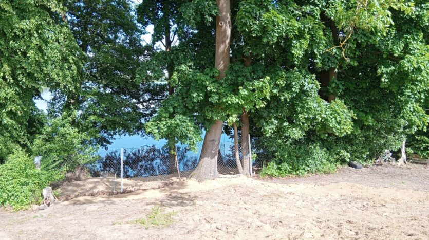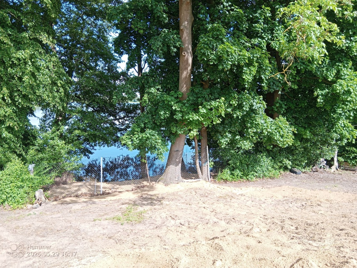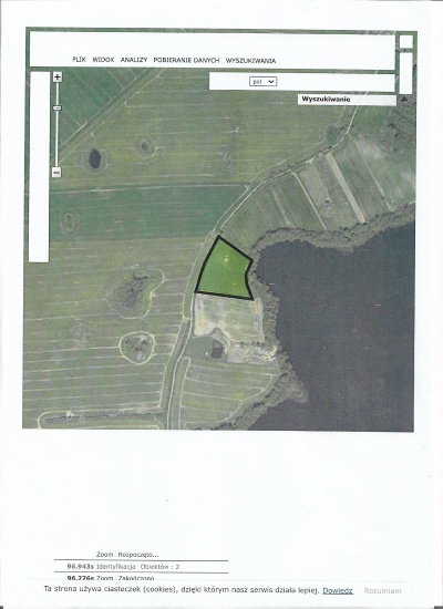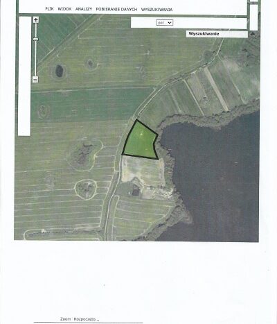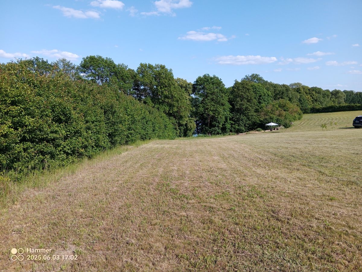 Sprzedam atrakcyjną działkę z linią brzegową jeziora-prywatną plaża i małą winnicą.Działka 1.25 ha.Około 35m bezpośredniego dostępu do jeziora(72.5 ha/max.głębokość 11m) i około 70 m dostępu przez skarpę nadbrzeżną. Możliwość uprawniania sportów wodnych/pływania w kameralnych okolicznościach przyrody. Działka obsiana trawą.Sąsiednie tereny uprawiane rolniczo-pszenica,żyto,rzepak.