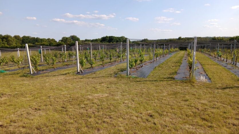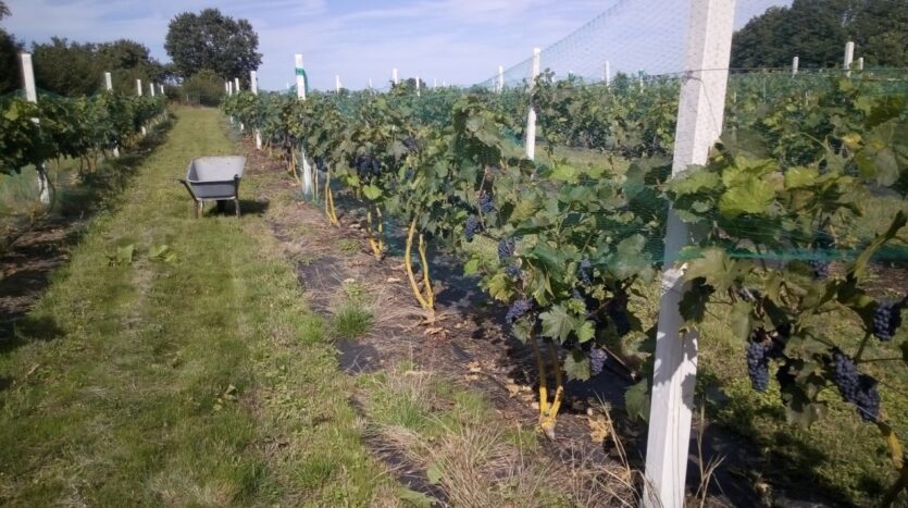 -7 letnia Winnica-550 certyfikowanych krzaków Pinot Noir,Seyval Blanc i Leon Millot.Areał można powiększyć.Obecna wydajność -700-900 kg.Winorośl corocznie docinana,nawożona i pielęgnowana.Winnica calkowicie oslonieta siatka przeciw szkodnikom.
