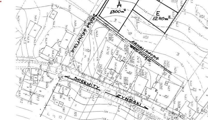 Uzbrojenie. Linia energetyczna kablowa i kanalizacja sanitarna przebiegają w drodze gruntowej, przy granicy działek. Przy wschodniej granicy działki A przebiega wodociąg gminny.