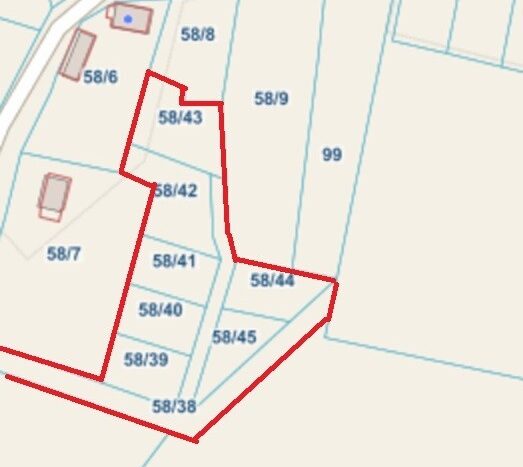 Dodatkowo płatny udział w drodze ok. 300m2 ( cena do ustalenia). Działka nr 58/38 stanowi drogę wewnętrzną o pow. 2090 m2