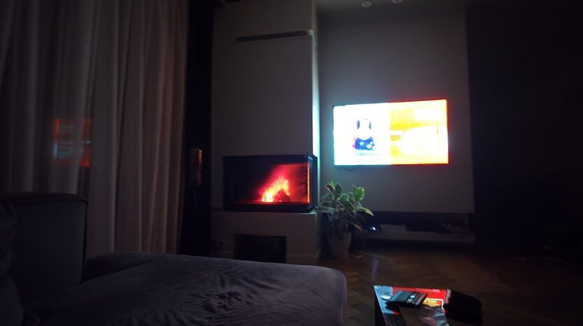Strefa dzienna to elegancka, pełna światła przestrzeń z kominkiem, który buduje klimat wnętrza i podkreśla jego charakter. Duże przeszklenia otwierają salon na ogród – prywatną, zieloną strefę relaksu.