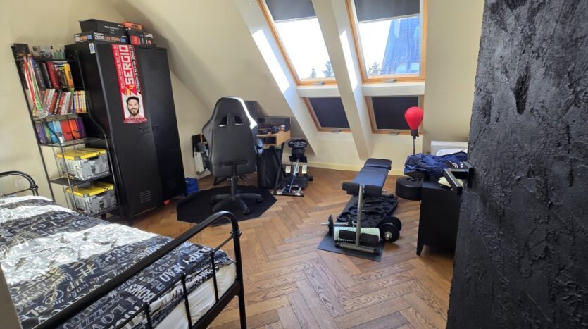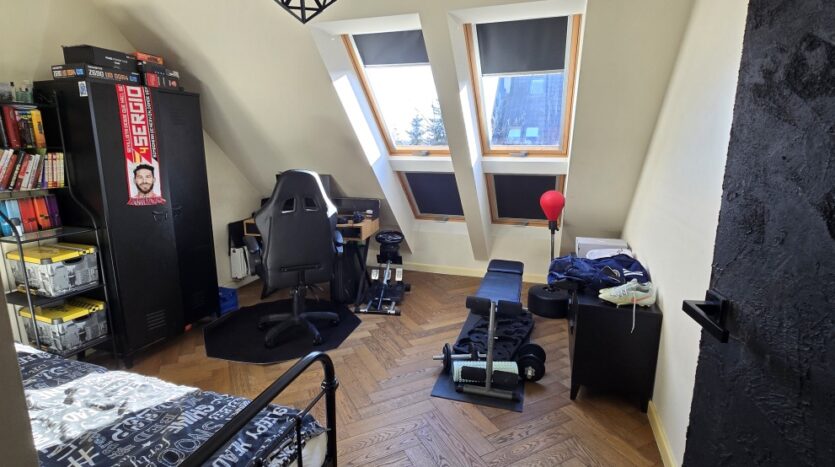 Zaadaptowane poddasze oferuje kolejną pełnowartościową przestrzeń do własnej aranżacji – prywatna siłownia, kino domowe, strefa hobby, dodatkowy gabinet lub apartament gościnny.