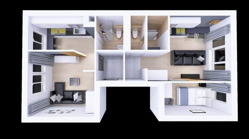 Mieszkania zaaranżowane oraz w pełni wyposażone w sposób funkcjonalny dla najemców. Oba mieszkania wynajęte