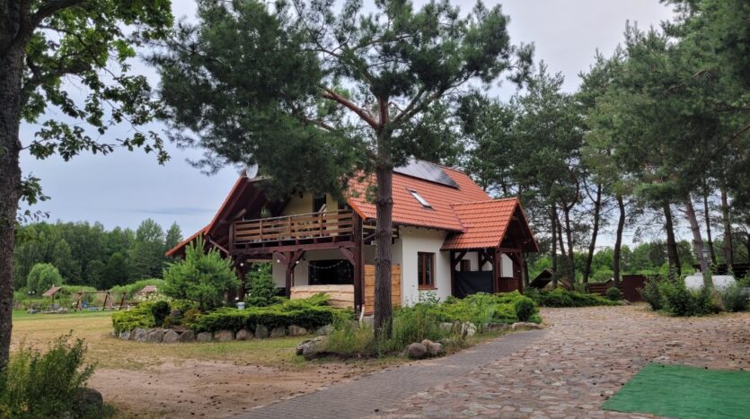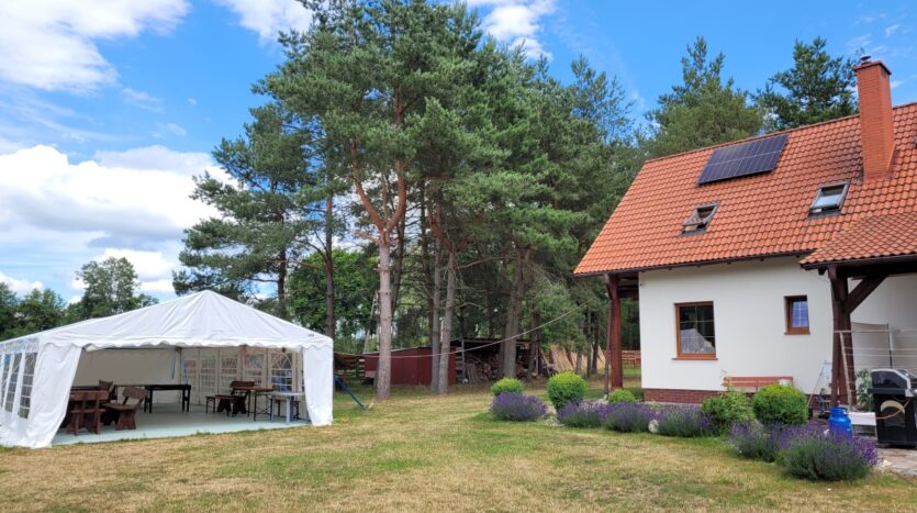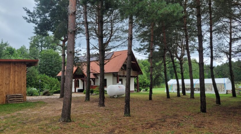 Sprzedamy wolnostojący dom jednorodzinny na dużej działce 1,5ha wraz z dwoma całorocznymi domkami (każdy 35m² powierzchni zabudowy).
