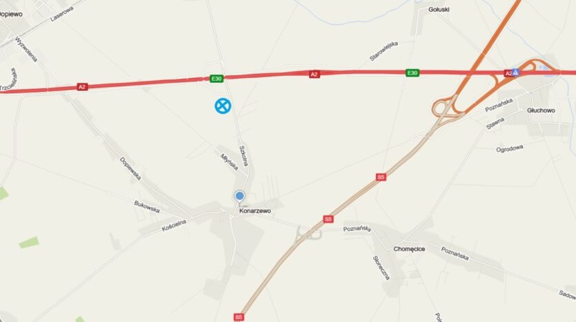 Grunt inwestycyjny zlokalizowany w Konarzewie przy ul. Szkolnej – droga asfaltowa, przy autostradzie A2, tylko 3 km od czynnego już węzła Konarzewo.