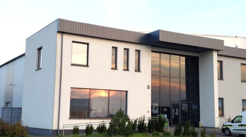 Inwestycja zlokalizowana jest w Pobiedziskach przy ulicy Partnerskiej, na działce nr 112/14 na terenie przeznaczonym w Planie Miejscowym pod aktywizację gospodarcza. Przedmiotowa działka ma powierzchnię 40,434 m2. Zaprojektowany obiekt w zasadniczej części mieszczącej biura oraz części socjalnej jest dwukondygnacyjny, natomiast przyległa do niego hala produkcyjno – magazynowa jest jednokondygnacyjna. Budynki są niepodpiwniczone, kryte dachami dwuspadowymi (5st. pochylenia). Na działce wydzielono tereny zielone oraz 41 miejsc parkingowych (w tym 3 dla niepełnosprawnych) zlokalizowanych wzdłuż wewnętrznych dróg. Na części zaprojektowana została utwardzona nawierzchnia zapewniająca możliwość użytkowania przez pojazdy ciężkie obsługujące magazyny.