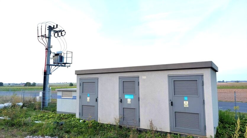 Samodzielna stacja transformatorowa o mocy 630 kVA, z możliwością przyłączeniową do 1000 kW ( w jednej komorze), dwukomorowa co daje maksymalną możliwość rozbudowy do 2000 kW.