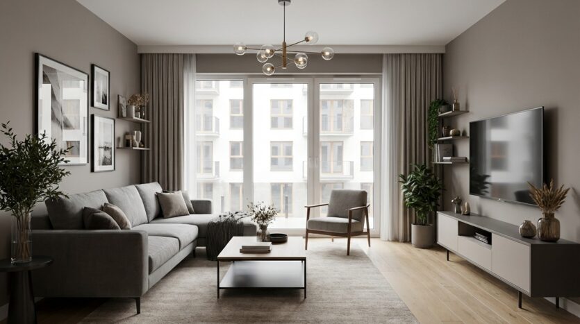 Prezentowane wizualizacje mają charakter poglądowy i zostały wygenerowane przy użyciu narzędzi sztucznej inteligencji. Przedstawiają przykładową aranżację wnętrza i nie stanowią odzwierciedlenia stanu faktycznego nieruchomości ani oferty wykończenia.
