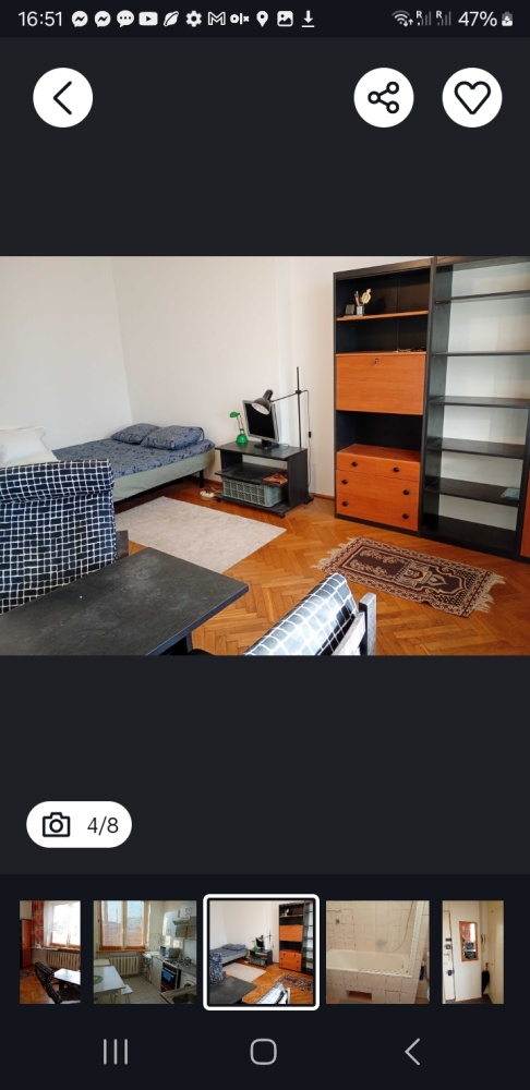 Mieszkanie słoneczne, 6 piętro w dobrze utrzymanej kamienicy z windą (na zdjęciu widok klatki oraz widok z okna) . Opłata za najem 2200 PLN. Dodatkowo czynsz, administracyjny 550,-PLN plus opłaty licznikowe (gaz, prąd) rzędu 150 zł/msc.