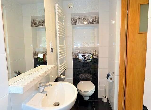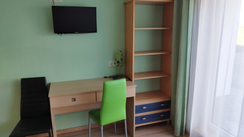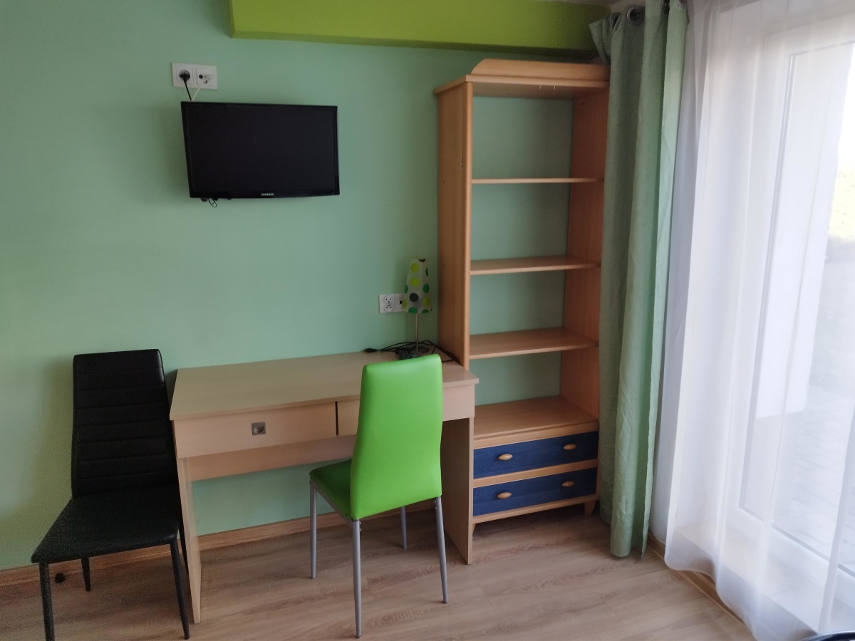 Mieszkanie w pełni wyposażone i umeblowane . TV cyfrowy Panasonic z aktualnym dekoderem , router WIFI – Internet po kablu lub WIFI .Do dyspozycji płyta indukcyjna dwustanowiskowa, lodówka , suszarka do naczyń, zasłony, firanki , krzesła , pojemna szafa na ubrania, dywanik , biurko z szufladami, wygodne łóżko z komfortowym materacem