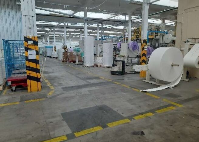 łączna powierzchnia zabudowy: 18 048 m² (hala produkcyjna, magazyny, biura)