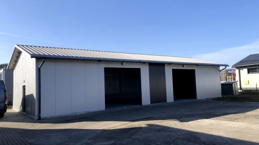 – budynek wyposażony w 2 bramy przemysłowe marki „Wiśniowski” (400cm × 400cm).