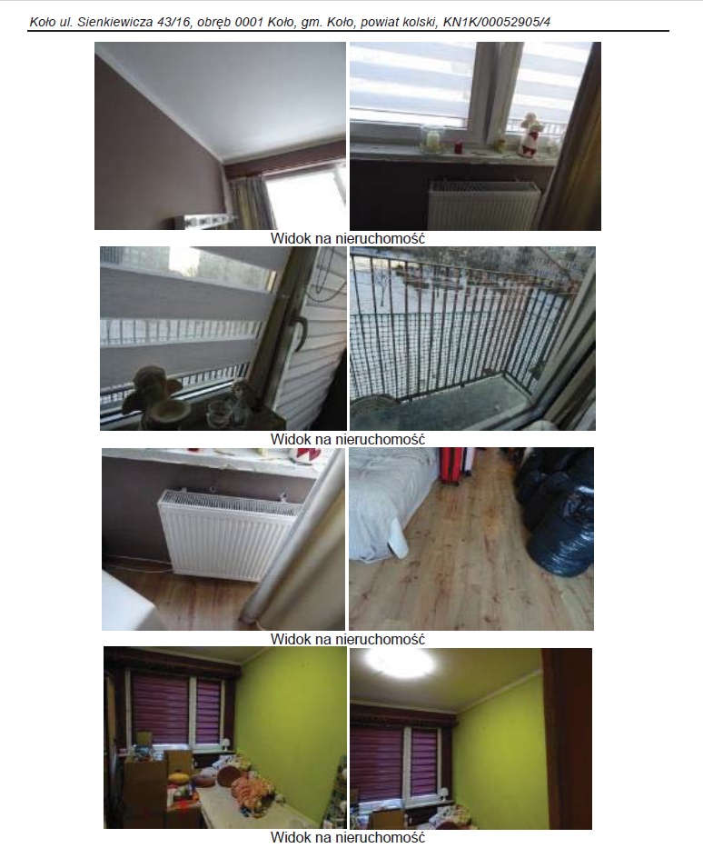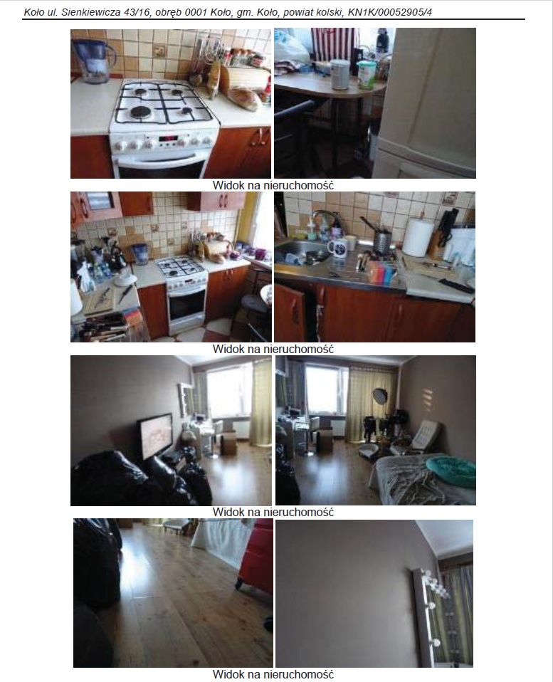 Konkurs na sprzedaż udziału w wysokości 1/2 w spółdzielczym własnościowym prawie do lokalu mieszkalnego nr 16 położonego w Kole przy ul. Sienkiewicza 43 o powierzchni użytkowej 39,01 m2 dla której Sąd Rejonowy w Kole, V Wydział Ksiąg Wieczystych prowadzi księgę wieczystą numer KN1K/00052905/4, cena wywoławcza 25.000,00 zł (słownie: dwadzieścia pięć tysięcy złotych 00/100).
