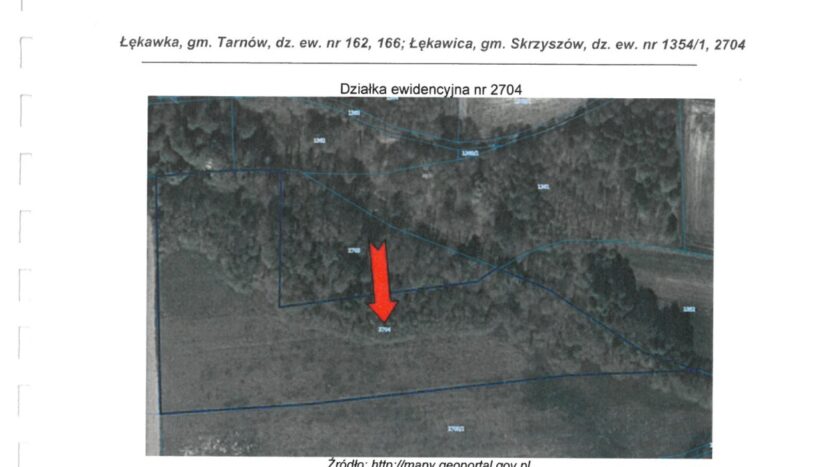 Konkurs na sprzedaż prawa własności nieruchomości gruntowej niezabudowanej stanowiącej działkę o nr 2704 o powierzchni 0,6800 ha, położoną w miejscowości Łękawica, gmina Skrzyszów objętej księgą wieczystą nr TR1T/00087491/7, cena wywoławcza 12.750,00 zł (słownie: dwanaście tysięcy siedemset pięćdziesiąt złotych i zero groszy).