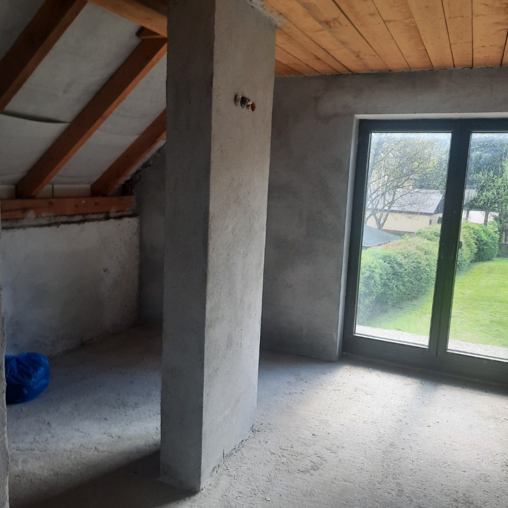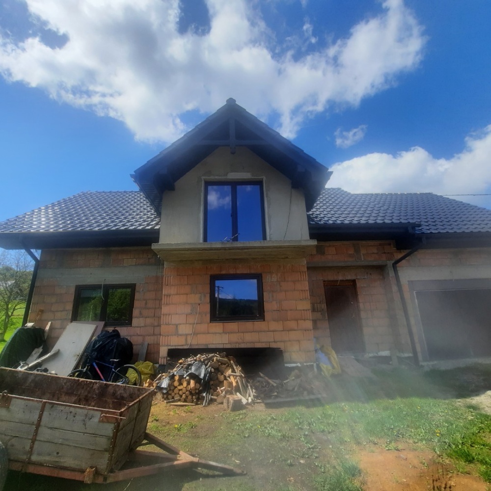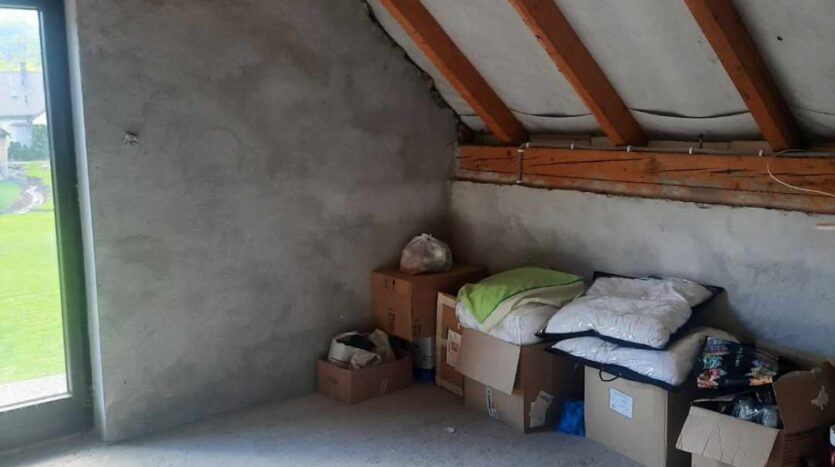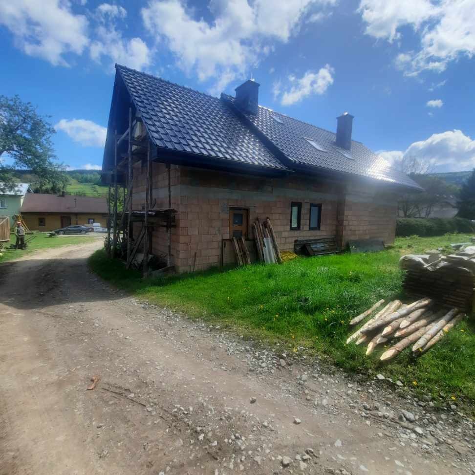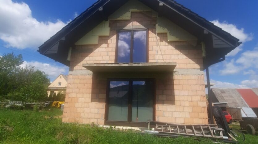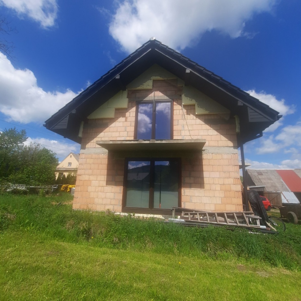 Sprzedam dom 150 m/kw na działce 7ar w Porębie koło Myślenic.Bardzo spokojna okolica,dom w drugiej linii zabudowy.Stan domu -do wykończenia.Są wylewki , tynki,stolarka.Parter-przedpokój,kuchnia,pokój dzienny,hol,łazienka,pom. gospodarcze,garaż,spiżarnia,pow.lączna 80,6 m2.Poddasze-hol,łazienka,4 pokoje,garderoba o pow łącznej użutkowej 58,7 m2.Powieszchnia całkowita 149,8 m2,Cena 495000.Mogę pomóc w uzyskaniu kredytu.
