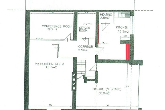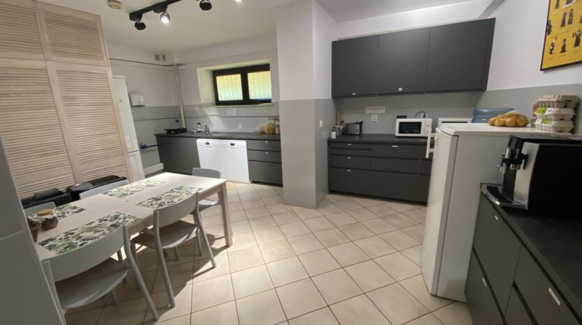 18 pokoi, serwerownia, 3 łazienki, duża kuchnia.