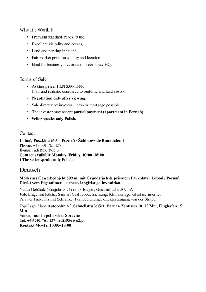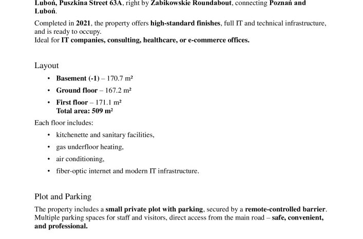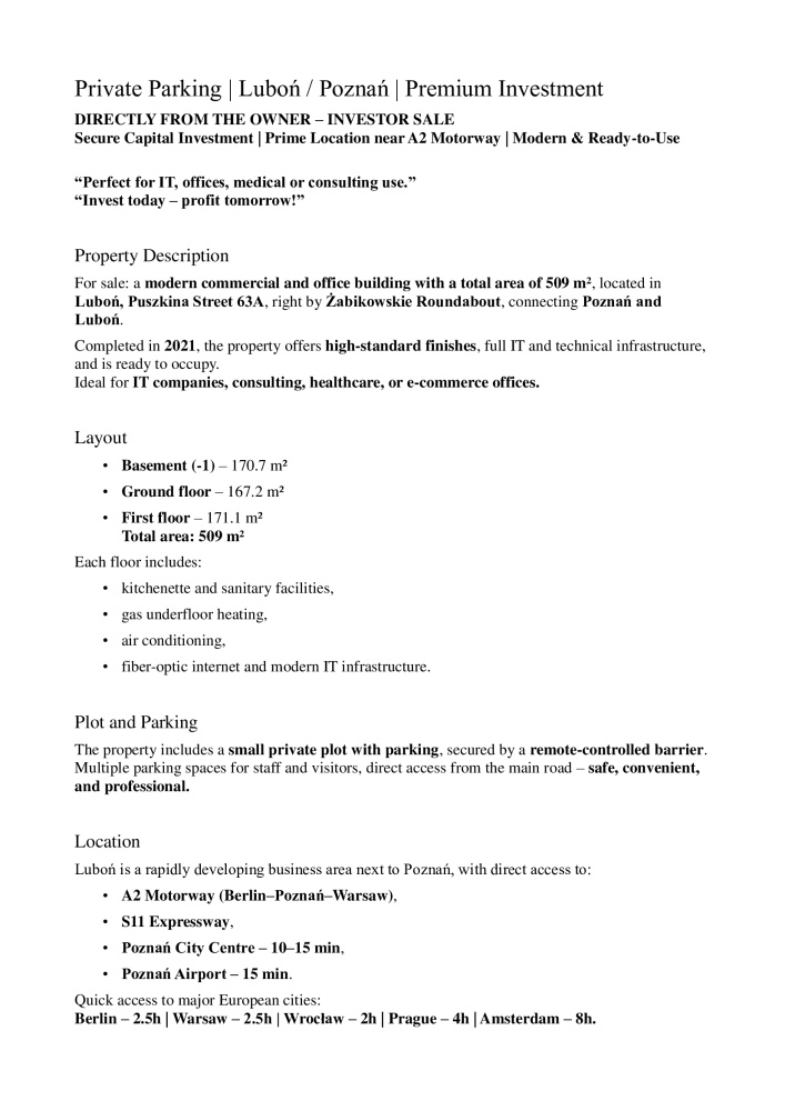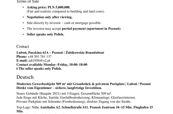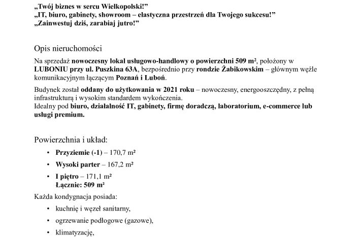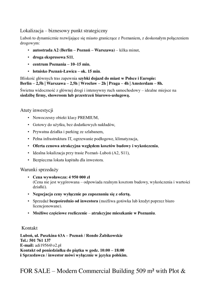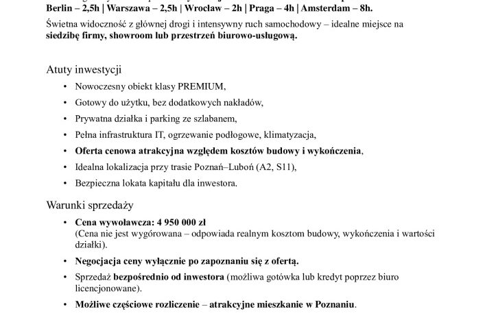 NOWOCZESNY LOKAL USŁUGOWO–HANDLOWY 509 m² Z DZIAŁKĄ I PARKINGIEM | LUBOŃ / POZNAŃ | INWESTYCJA PREMIUM
