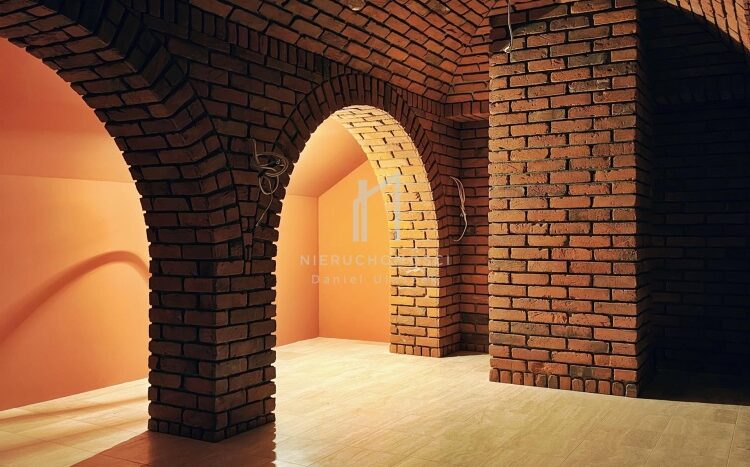 • klimatyczną piwniczkę na wino wykończona cegłą z charakterystycznym łukiem sklepiennym.