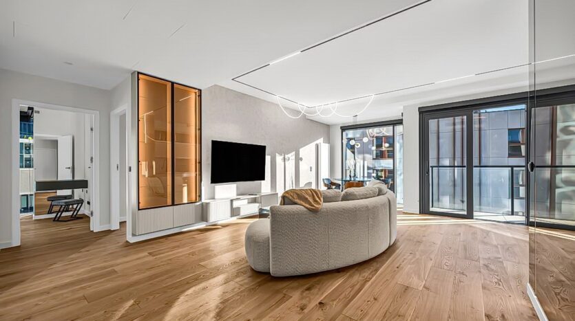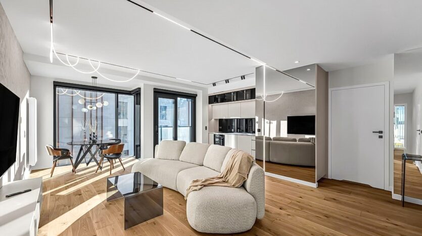 Nowoczesny apartament w biznesowym sercu Warszawy, tuż przy metrze Rondo Daszyńskiego, w sąsiedztwie Warsaw Hub i pasażu usługowego.