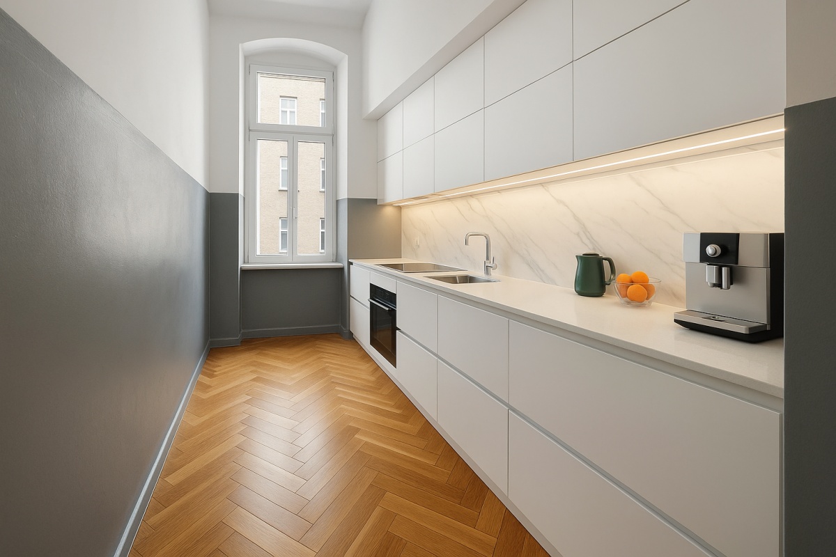 Na 5 pokoi składają się jasne i wysokie wnętrza z dużymi nowymi oknami, które dają wiele możliwości aranżacyjnych – idealne zarówno dla rodziny, jak i pod prestiżowe biuro.