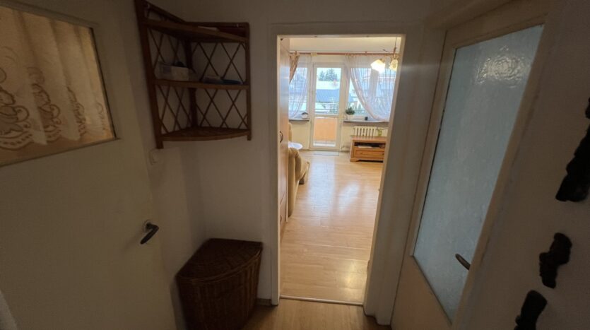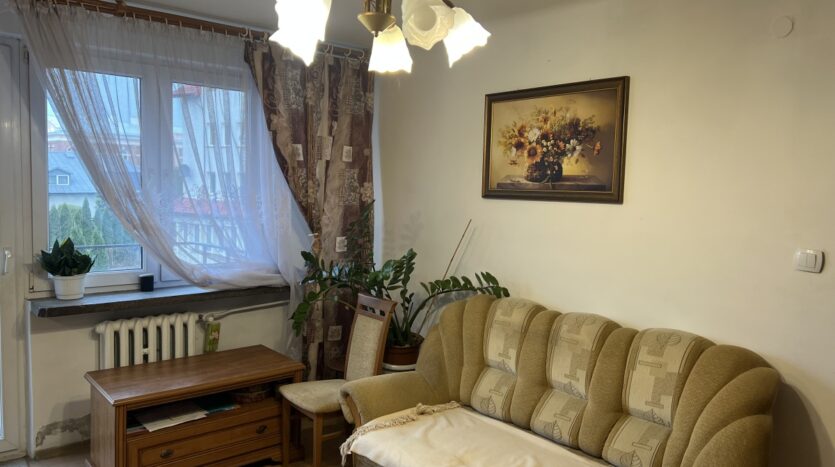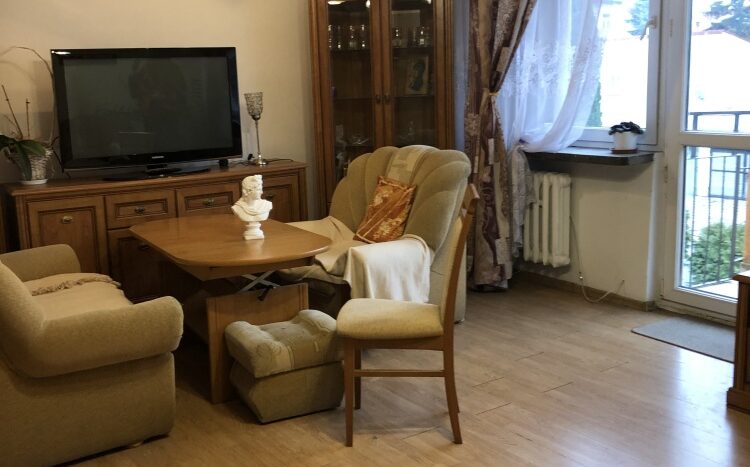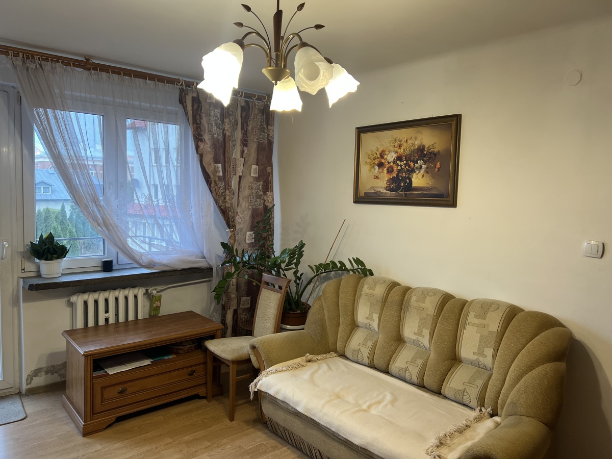 Mieszkanie położone jest blisko centrum miasta oraz instytucji publicznych (urząd miasta, starostwo, dom kultury). Innym atutem jest przestronny i ustawny salon oraz położenie na pierwszym piętrze. Mieszkanie wymaga odświeżenia. Stan prawny – lokal na własność z księgą wieczystą. Stałe opłaty na rzecz wspólnoty mieszkaniowej.
