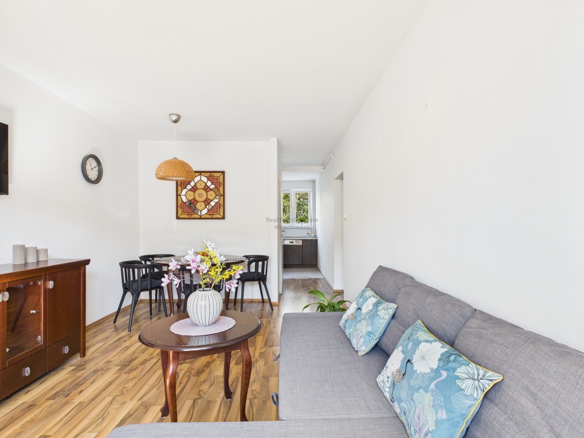 Mieszkanie znajduje się na 2. piętrze w zadbanym, 4-piętrowym budynku z lat 70. Klatka schodowa jest świeżo po remoncie. Do lokalu przynależy piwnica, a dodatkowym atutem są: balkon francuski, okna PCV oraz drzwi antywłamaniowe Gerda.