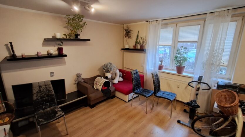 Mieszkanie składa się z dwóch niezależnych pokoi, niezależnej kuchni i łazienki i jest położone na parterze w kamienicy zbudowanej z cegieł (rzut mieszkania dołączony do ogłoszenia).