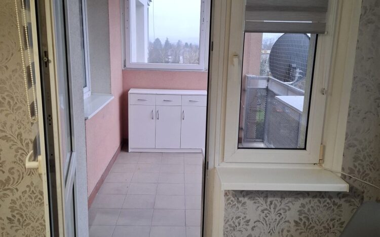 • duży balkon zabezpieczony siatką – na balkonie są szafki do przechowywania