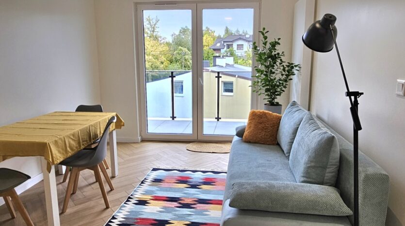 – Salon z balkonem i kuchnią. Ok 26m2.
