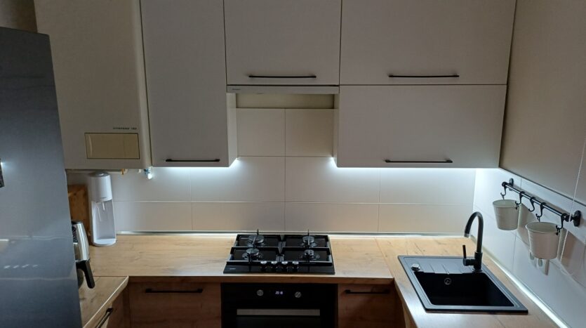 Wyposażenie: okna PCV, nowe drzwi wejściowe, drzwi wewnętrzne dębowe, dębowy parkiet, kuchnia i łazienka płytki ceramiczne, stała zabudowa kuchenna (pralka, lodówka, piekarnik, płyta gazowa) oraz szafa w pokoju w cenie mieszkania, stan techniczny: bardzo dobry.