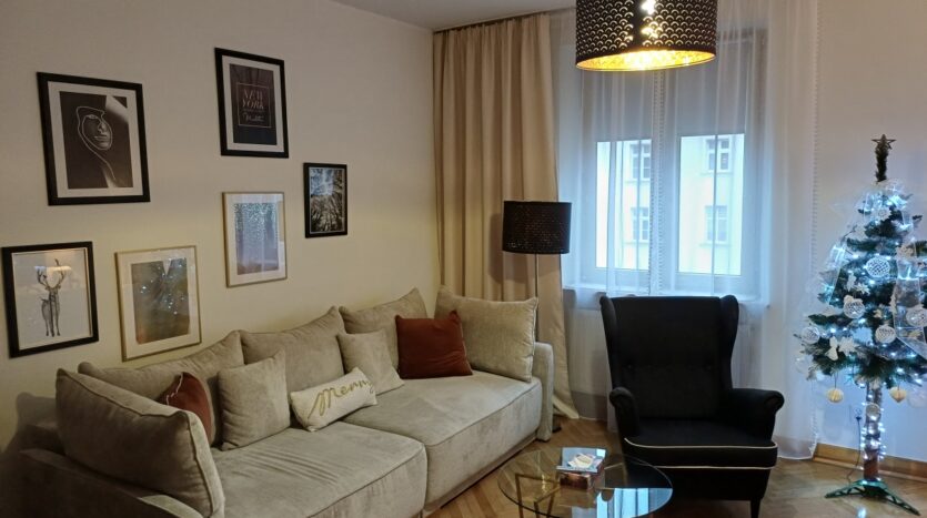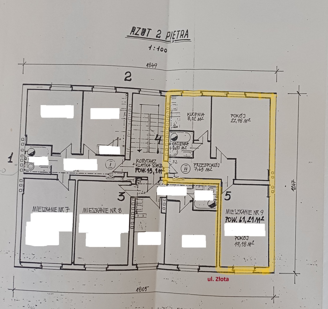 Charakterystyka mieszkania: 61,21 m², piętro 2/3, dwustronne, jednopoziomowe składające się z 2 dużych ustawnych pokoi, oddzielnej kuchni, łazienki z WC, przedpokoju, wysokość pomieszczeń 2,8m. Do mieszkania przynależy piwnica 5m2.