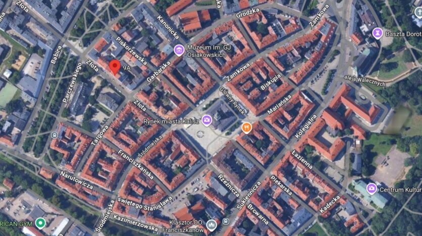 Mieszkanie jest zlokalizowane w pięknej okolicy zabytkowego centrum Kalisza – blisko ratusza, zrewitalizowanego Głównego Rynku otoczonego urokliwymi kamieniczkami z restauracjami, kawiarniami, jadłodajniami. W pobliżu znajdują się sklepy, markety (Biedronka, Lidl, Polo Market, Żabki, Hebe, Rossmann), Galeria Tęcza, ryneczek, poczta, punkty usługowe, przychodnie lekarskie, przedszkola, szkoły podstawowe i licea oraz teatr i Centrum Kultury i Sztuki, jak również liczne kluby fitness. Ogromną zaletą jest również niedaleka odległość pięknego Parku Miejskiego i Plant Miejskich, gdzie pośród zadbanej zieleni można odpocząć. Doskonała lokalizacja, prestiżowe położenie, które oferuje bezpośredni dostęp do bogatej infrastruktury miejskiej i komunikacji publicznej. Idealne dla osób szukających mieszkania w dobrej lokalizacji, inwestorów pod wynajem, na biuro lub kancelarię.