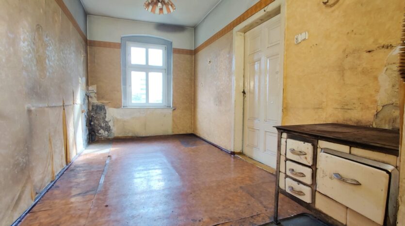 Standard wykończenia: Mieszkanie do kapitalnego remontu, do zrobienia instalacje: elektryczna, wodno-kanalizacyjna, grzewcza, ściany, podłogi, sufity, stolarka drzwiowa. Wyposażenie mieszkania we własnym zakresie. Mieszkaniu zostały wymienione wszystkie okna na PCV.