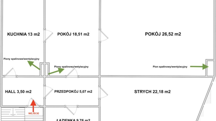Ogrzewanie: obecne piece kaflowe, możliwość zrobienia ogrzewania elektrycznego lub piec na Pelet z rozprowadzeniem centralnym.
