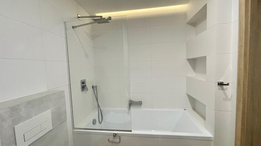 Mieszkanie jest całkowicie wykończone w wysokim standardzie, wyposażone w klimatyzację, nigdy nie było zamieszkiwane. Do mieszkania przynależy miejsce postojowe wliczone w cenę.