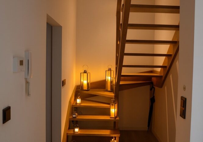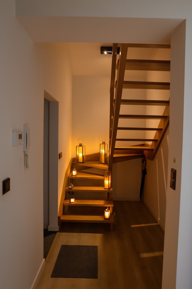 Na górę prowadzą drewniane schody dębowe.