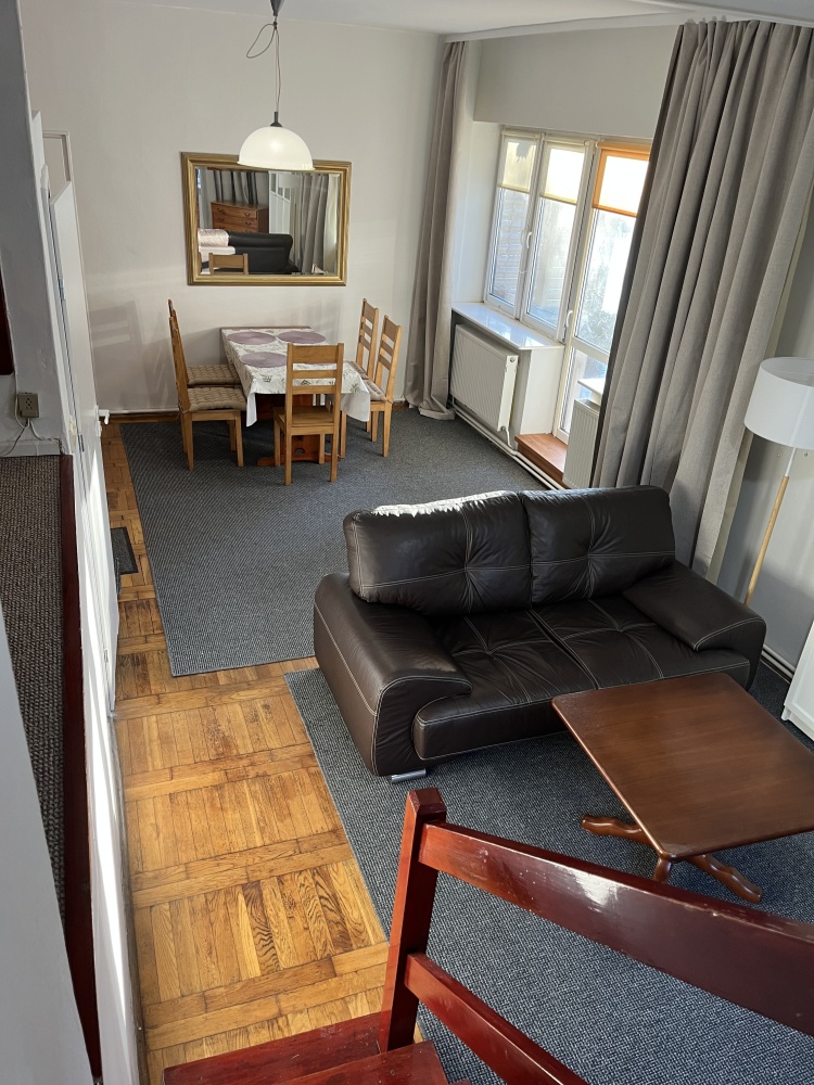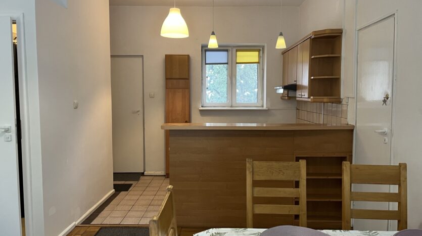 Mieszkanie jest czyste , po remoncie , jest wyposażone w meble oraz sprzęty AGD -pralka, lodówka, kuchenka z piekarnikiem, odkurzacz i znajduje się w dzielnicy Wawer w domu dwulokalowym wolnostojącym widocznym na zdjęciu.