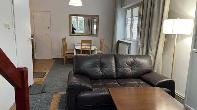Mieszkanie typu studio , osobne wejście, osobne licznik elektryczny w domu dwulokalowym do wynajęcia od zaraz. Mieszkanie o powierzchni 70 m.kw jest położone na trzech poziomach i ma przestrzeń otwartą, schody wewnętrzne – widoczne na zdjęciach, wysokość mieszkania wynosi 3,5 metra! Na parterze mieści się kuchnia otwarta na salon, osobne wc i łazienka oraz wyjście na taras o pow. 14 m.kw. Dwie pozostałe pomieszczenia mają po 13 – 16m. kw. są zlokalizowane na wyższych poziomach. Na podłodze drewniana klepka i wykładziny dywanowe. Dzięki grubym murom z cegły w mieszkaniu panuje doskonały klimat i nawet w wielkie upały jest chłód bez potrzeby klimatyzacji.