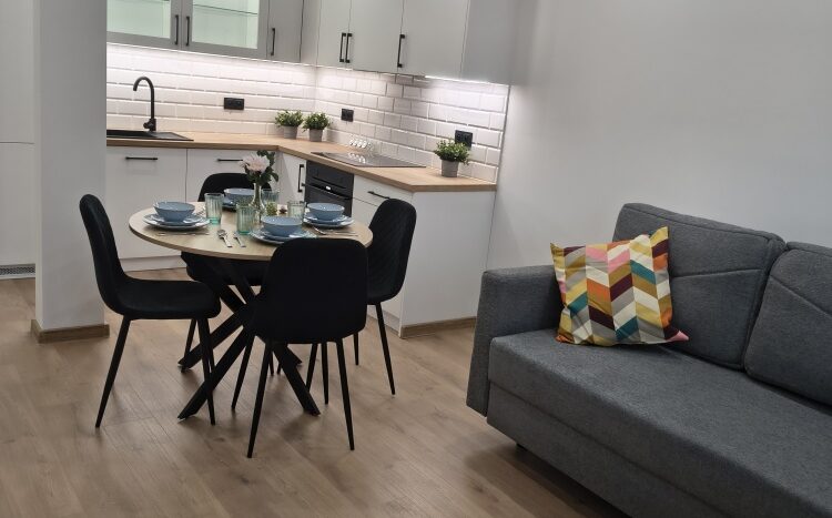 Mieszkanie jest jasne, ciepłe i przytulne, idealne zarówno dla pary, jak i singla.