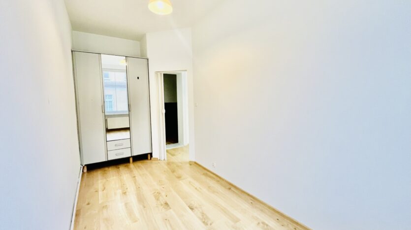dwa mniejsze pokoje (ok. 10 m² każdy) z dużą szafą wnękową z lustrem