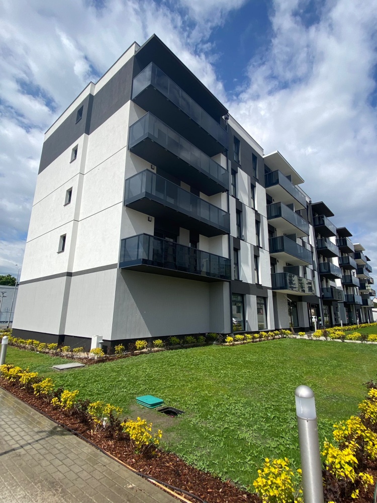Mieszkanie w nowym bloku przy ulicy Rynkowej.