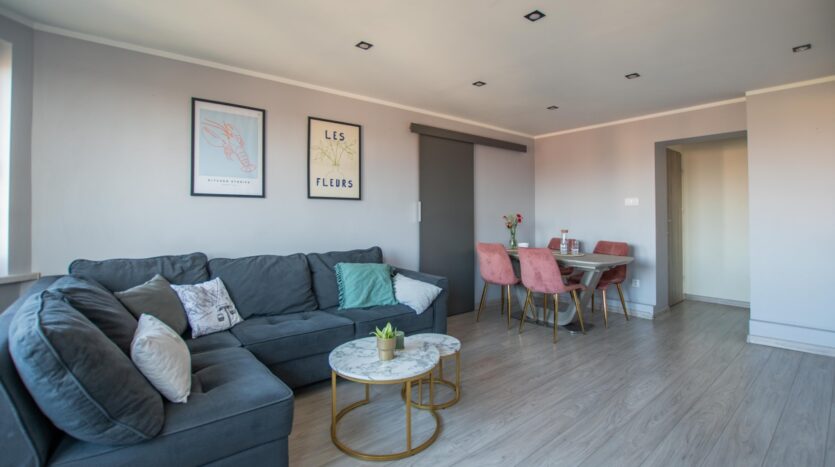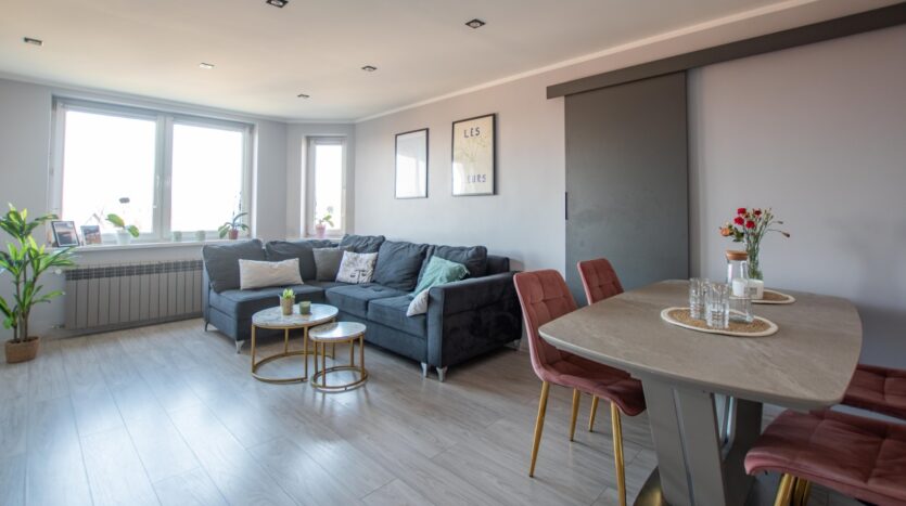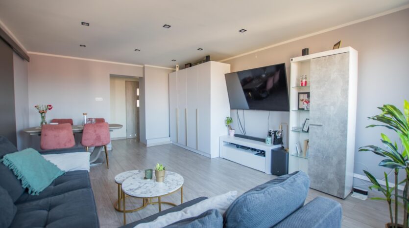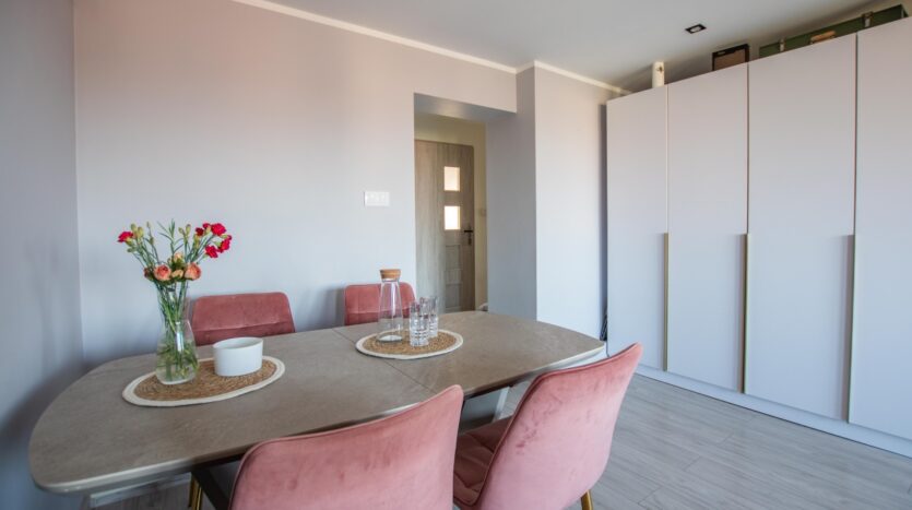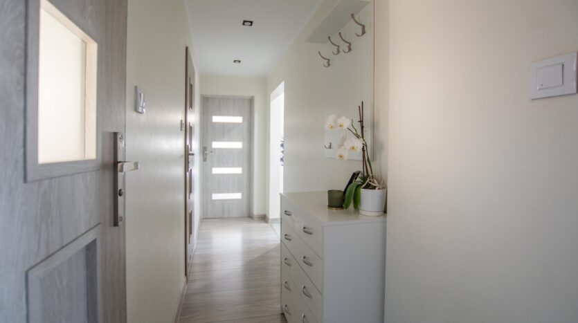 – Salon z garderobą – jasny i ustawny, z dużą ilością naturalnego światła, idealny do codziennego wypoczynku i spotkań.