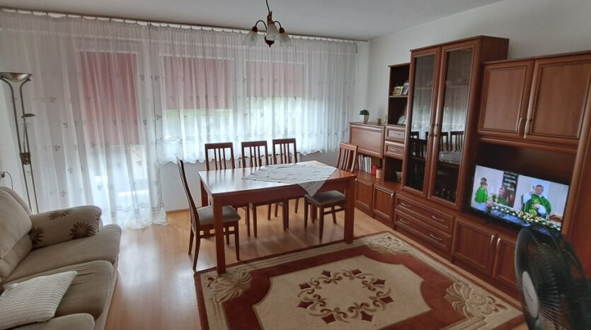 Mieszkanie zadbane, jasne, przestronne, rozkładowe, bardzo miłe, cały czas zamieszkiwane, sprzedawane razem (w cenie) z piwnicą, garażem i działką (5 arów).
