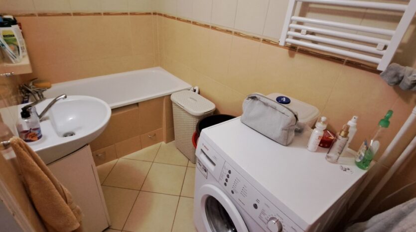 – wykafelkowanej łazienki z wanną i umywalką o pow. około 4 m2.